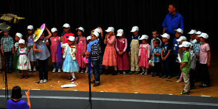 Fast 400 Besucher füllten die Aula bis an den Rand. Sie erlebten ein kurzweiliges, begeisterndes Singprogramm. Am Ende des Singfestes waren sich alle 100 singenden KiSINGa-Kinder mit ihren Gästen einig: