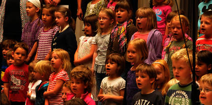 Die KiSINGa-Kinder waren mit Feuereifer und Konzentration bei der Sache, sie sangen ohne jede Spur von Lampenfieber, als sei das Singen auf der Bühne das Selbstverständlichste auf der Welt.