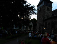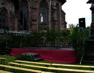 Mitarbeiter des Bauhofes der Stadt Hardegsen haben die Bühne erstellt, Eltern des Kinderchores haben sie mit Hardegser Waldgrün ausgeschmückt.