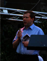Der Glockensachverständige Andreas Philipp erläutert Details der Glockensanierung.