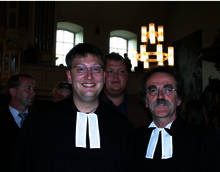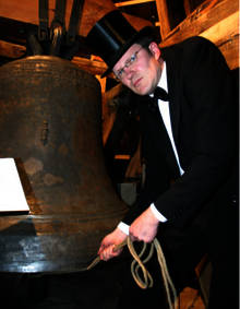 Aber unser heimlicher Star war unser Glöckner Carsten Armbrecht. Er, der sonst virtuos Geige zu spielen versteht, hatte die heikle Aufgabe, die große Glocke bei der Uraufführung der „Gratulatio Campanae“ punktgenau anzuschlagen – dies hat er mit Bravour und Spaß bewältigt!